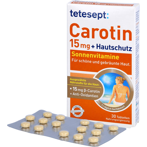 tetesept Carotin 15 mg + Hautschutz Sonnenvitamine für schöne und gebräunte Haut, 30 St. Tabletten
