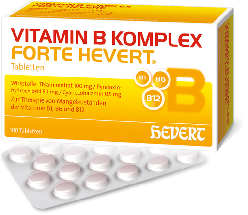 Vitamin B Komplex forte Hevert zur Therapie nachgewiesener Mangelzustände der Vitamine B1, B6 und B12, 100 pcs. Tablets