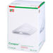 Trägervlies: weiß, 100% Polyester, Polyacrylatklebstoff (kolophonium- und kolophoniumderivatfrei).Wundkissen: Saugschicht aus Viskose und Polyethylen/Polypropylen, Wundkontaktschicht aus Polyethylen.