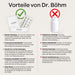 - Informationen zum Hersteller:Apomedica Pharmazeutische Produkte GmbH; Roseggerkai 3, 8010 Graz, AT; bestellung@drboehm-info.de; www.drboehm-info.de