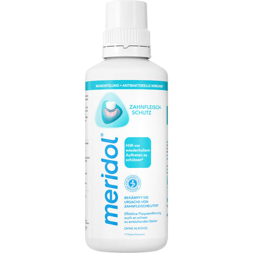 Mit meridol Zahnfleischschutz Mundspülung können Sie aktiv zum Schutz Ihres Mundraums vor Zahnfleischentzündungen und anderen Beschwerden wie Zahnfleischbluten beitragen. Diese Mundspülung für das Zahnfleisch enthält eine einzigartige Kombination aktiver Wirkstoffe. Die 2-fach Wirkformel bekämpft schnell die Ursache von Zahnfleischbluten schon vor der Entstehung und bietet langanhaltenden Schutz*. Außerdem bekämpft sie die Symptome von beginnenden Zahnfleischentzündungen. Darüber hinaus haben die aktiven Wirkstoffe in dieser Mundspülung gegen Zahnfleischentzündung einen antibakteriellen Effekt und verteilen sich sofort im gesamten Mundraum, wo sie umgehend wirken. Die Entstehung von Bakterien wird über einen langen Zeitraum hinweg reduziert und die Entzündung Ihres Zahnfleischs effektiv verhindert. Diese Mundspülung für das Zahnfleisch schützt nicht nur gegen Zahnfleischentzündung und die Entstehung von Bakterien, sondern auch vor Zahnfleischbluten, Zahnfleischrückgang, Parodontitis und Karies. Bei täglicher Anwendung sorgt meridol Zahnfleischschutz Mundspülung für den Erhalt des natürlichen Gleichgewichts Ihrer Mundflora und trägt so zur ihrer anhaltenden Gesundheit bei.