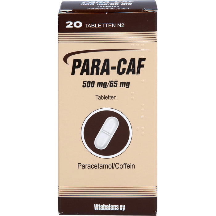 Para-Caf ist ein schmerzstillendes und fiebersenkendes Arzneimittel. Para-Caf enthält zwei Wirkstoffe, Paracetamol und Coffein. Paracetamol lindert Schmerzen und senkt Fieber, und Coffein unterstützt die schmerzlindernde Wirkung. Para-Caf wird zur symptomatischen Behandlung von leichten bis mäßig starken Schmerzen, z.B. Kopfschmerzen, Zahnschmerzen, Regelschmerzen und/oder Fieber angewendet.